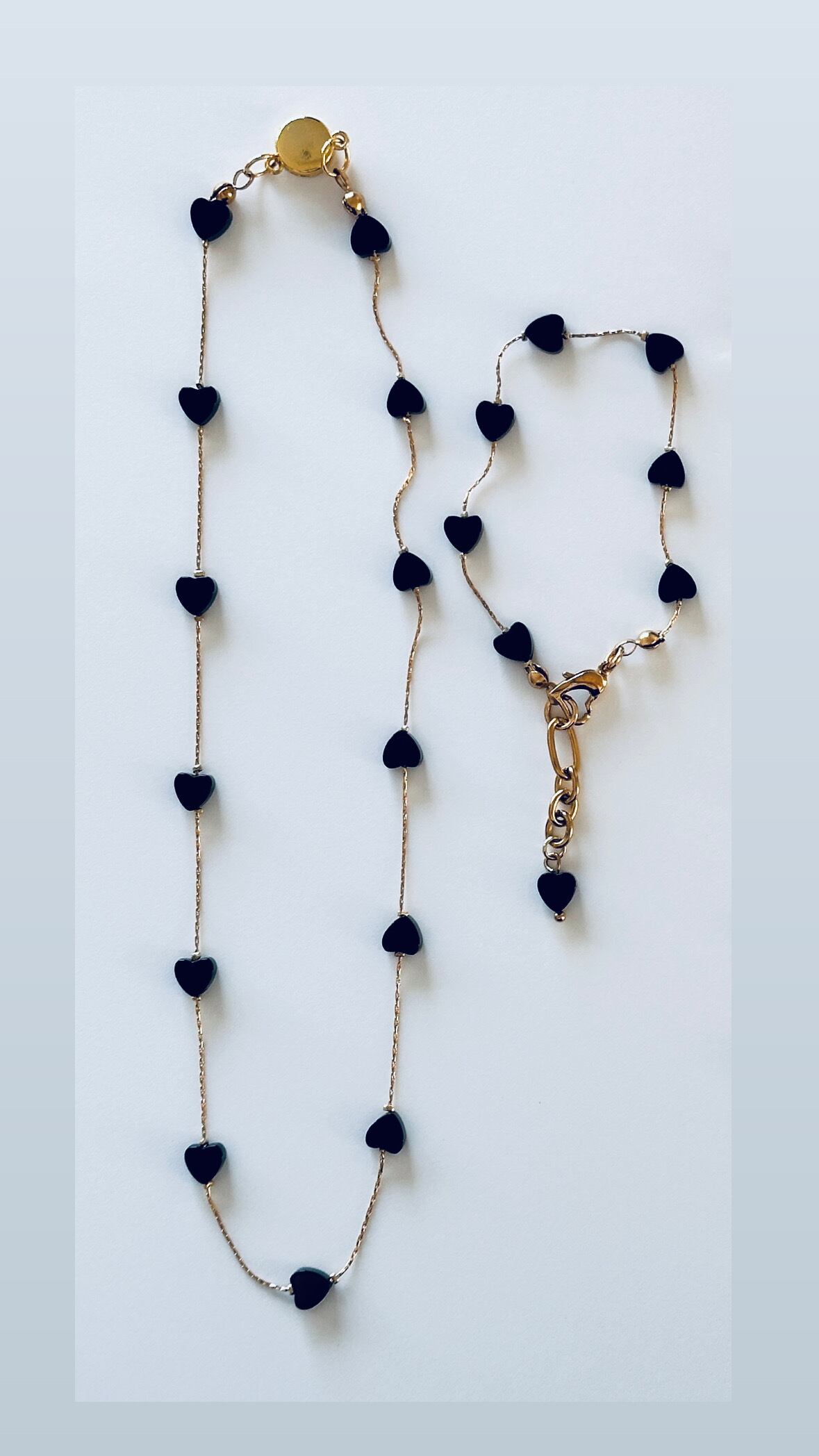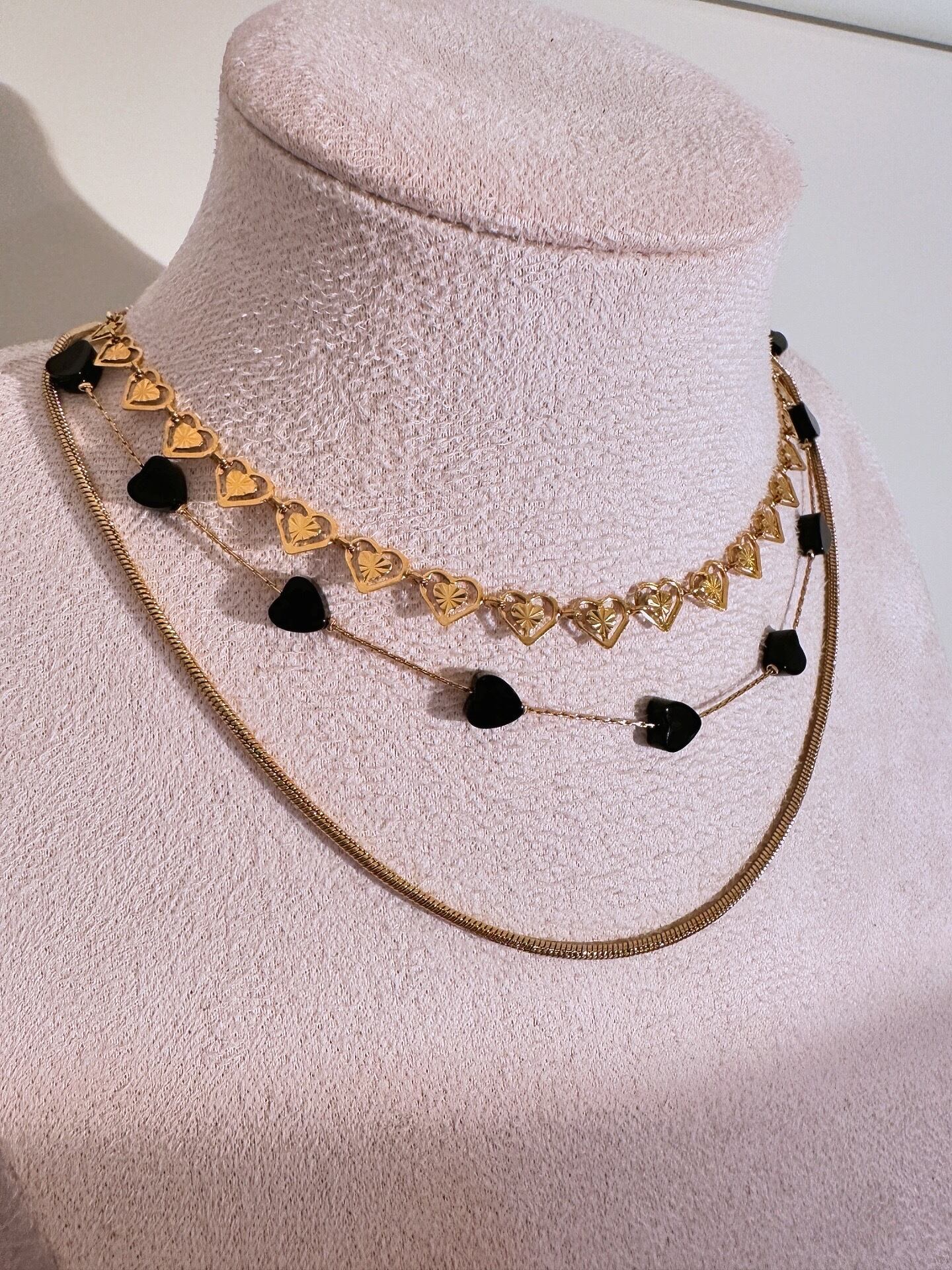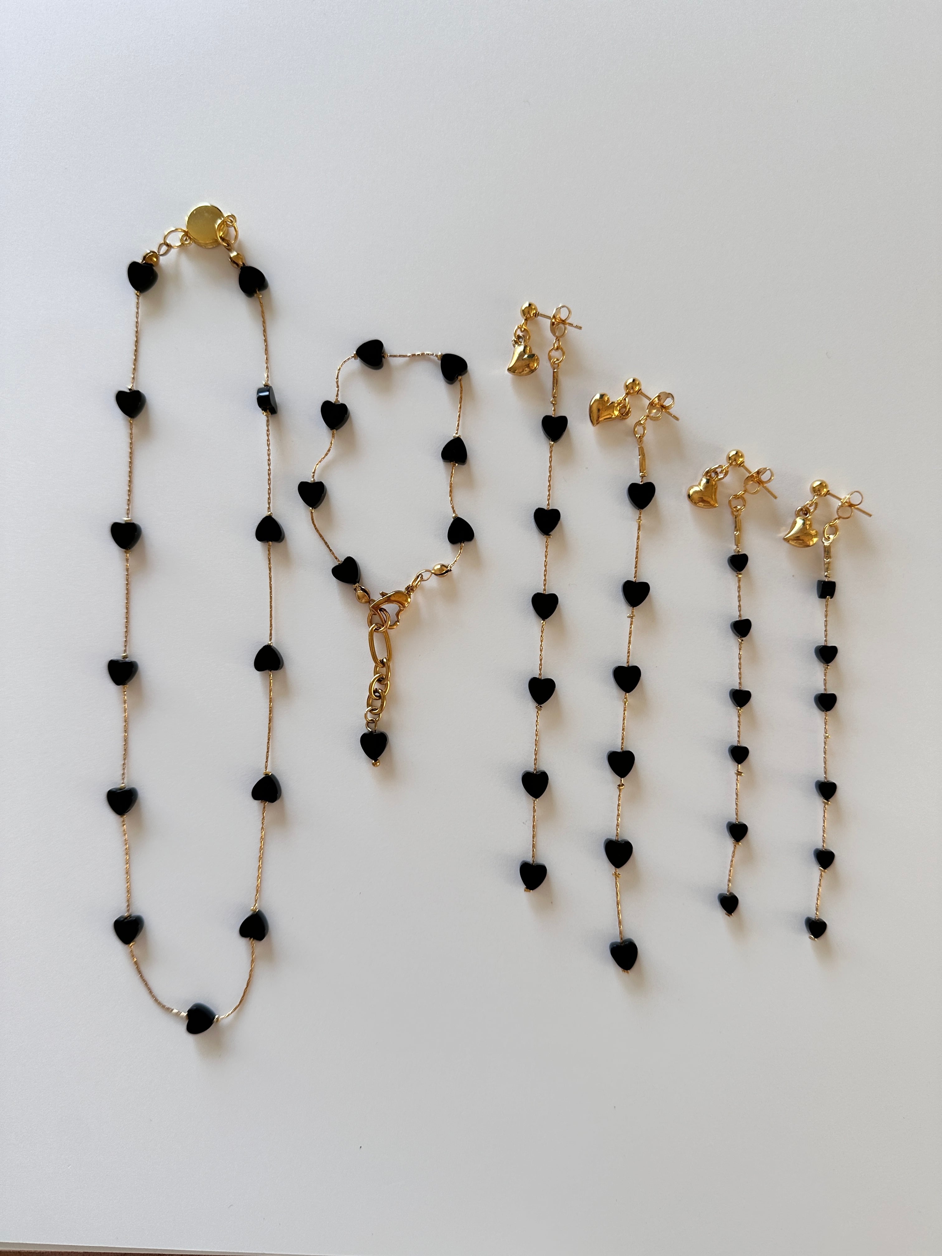 等間隔で細いチェーンにハートを配置。