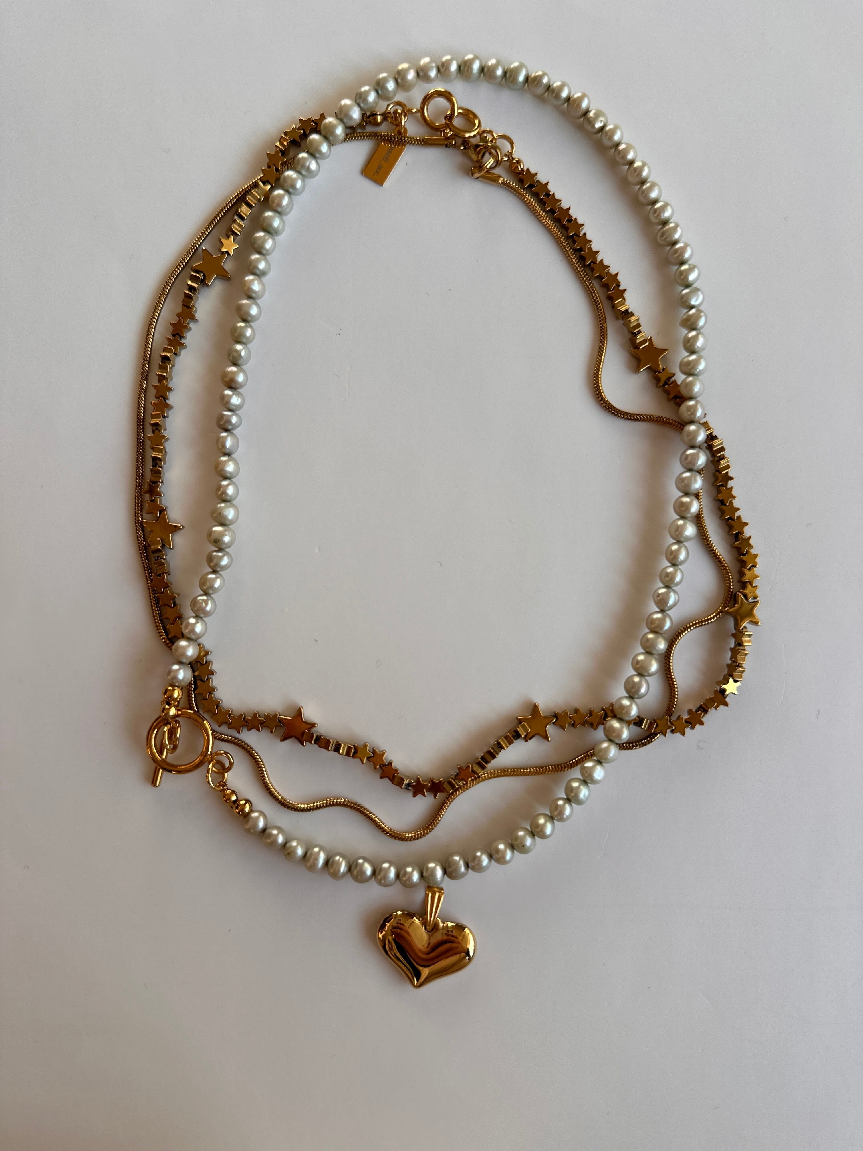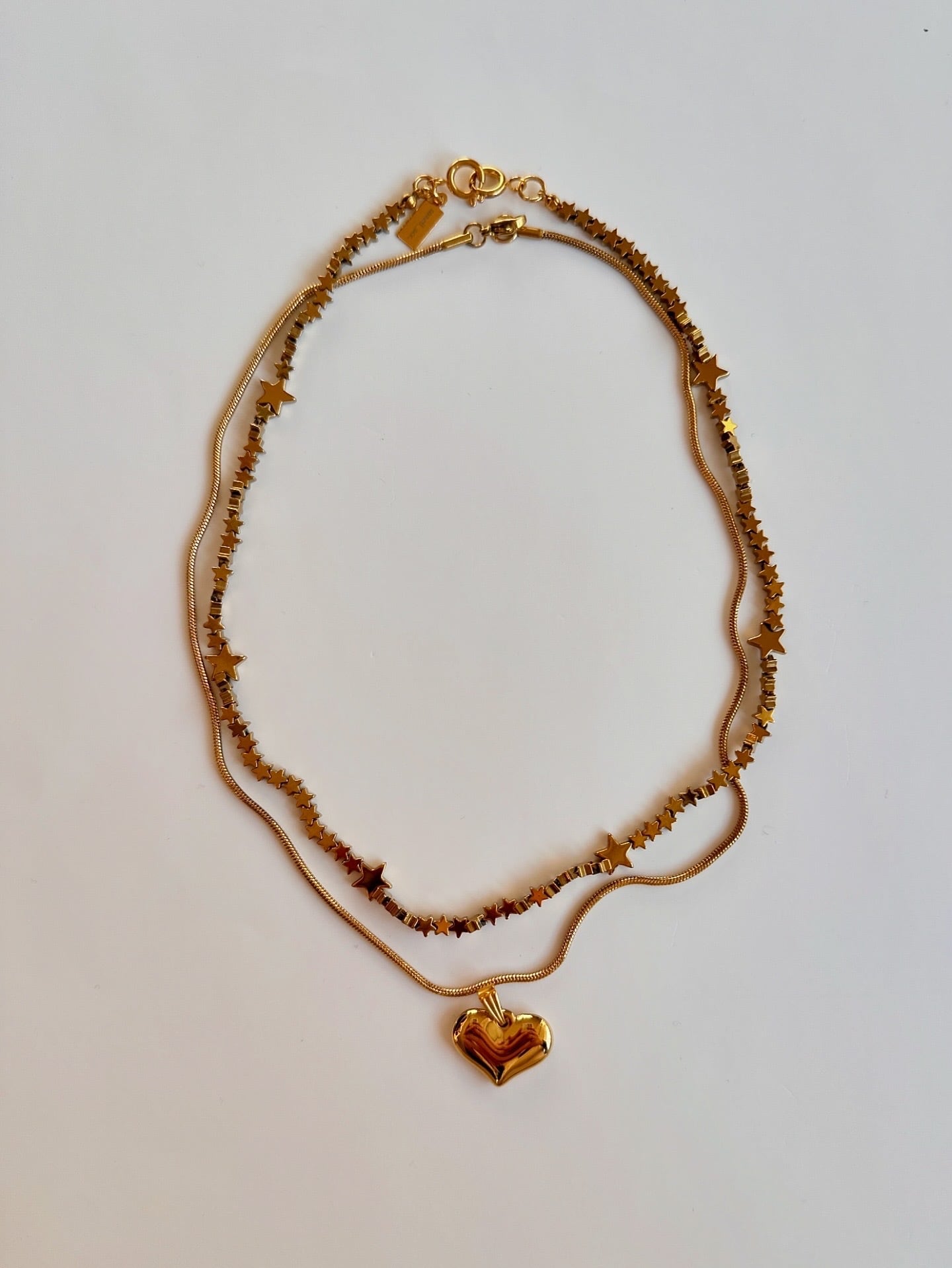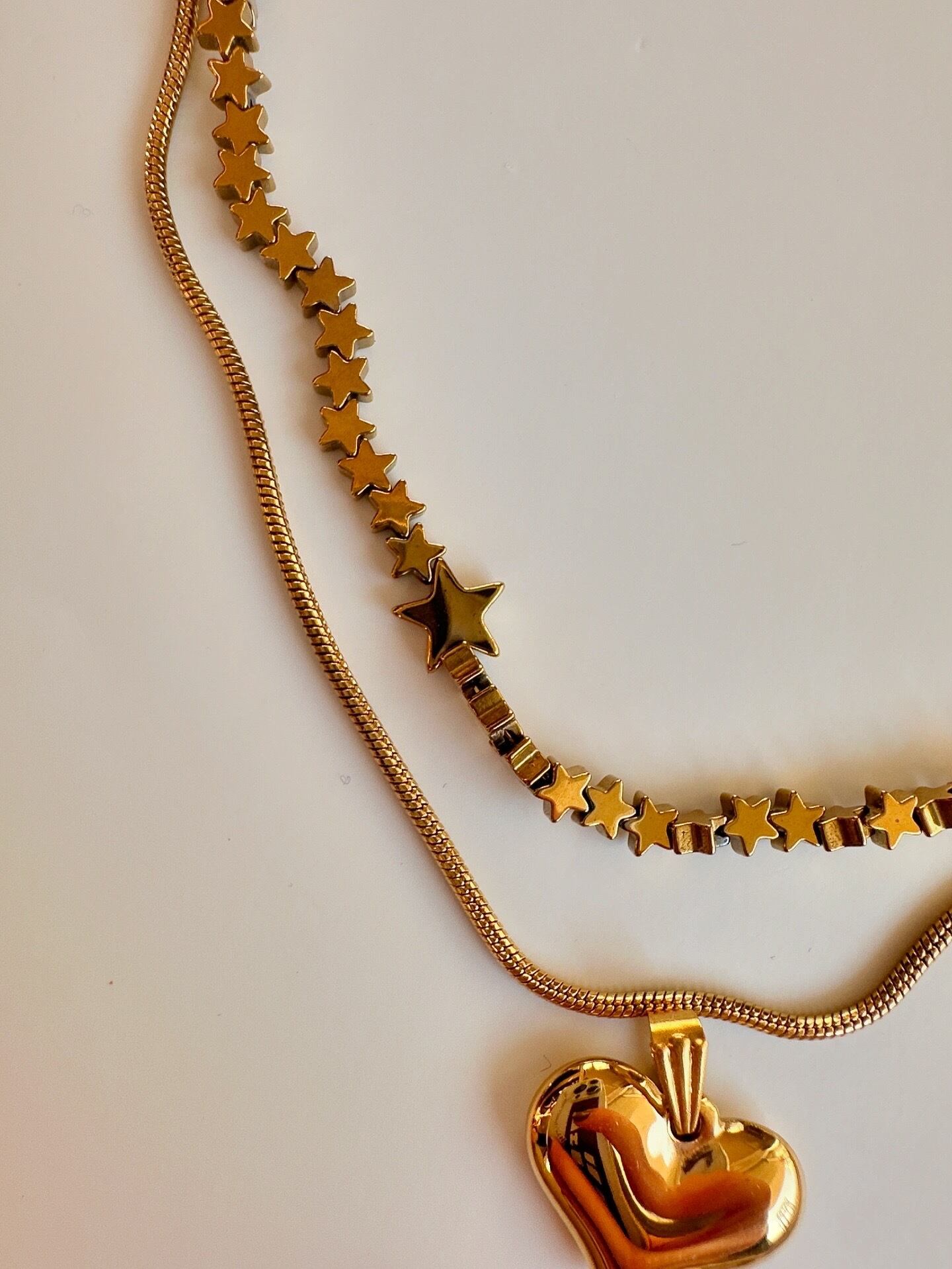 GOLD 3点set ヘマタイトのstarネックレス&スネークチェーン、チャーム(ネックレス2,チャーム1)