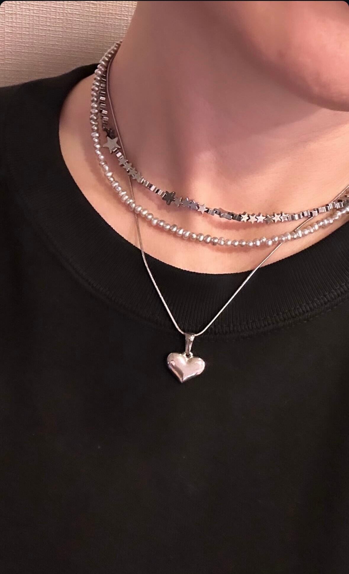 SILVER 3点set ヘマタイトのstarネックレス&スネークチェーン、チャーム(ネックレス2,チャーム1)
