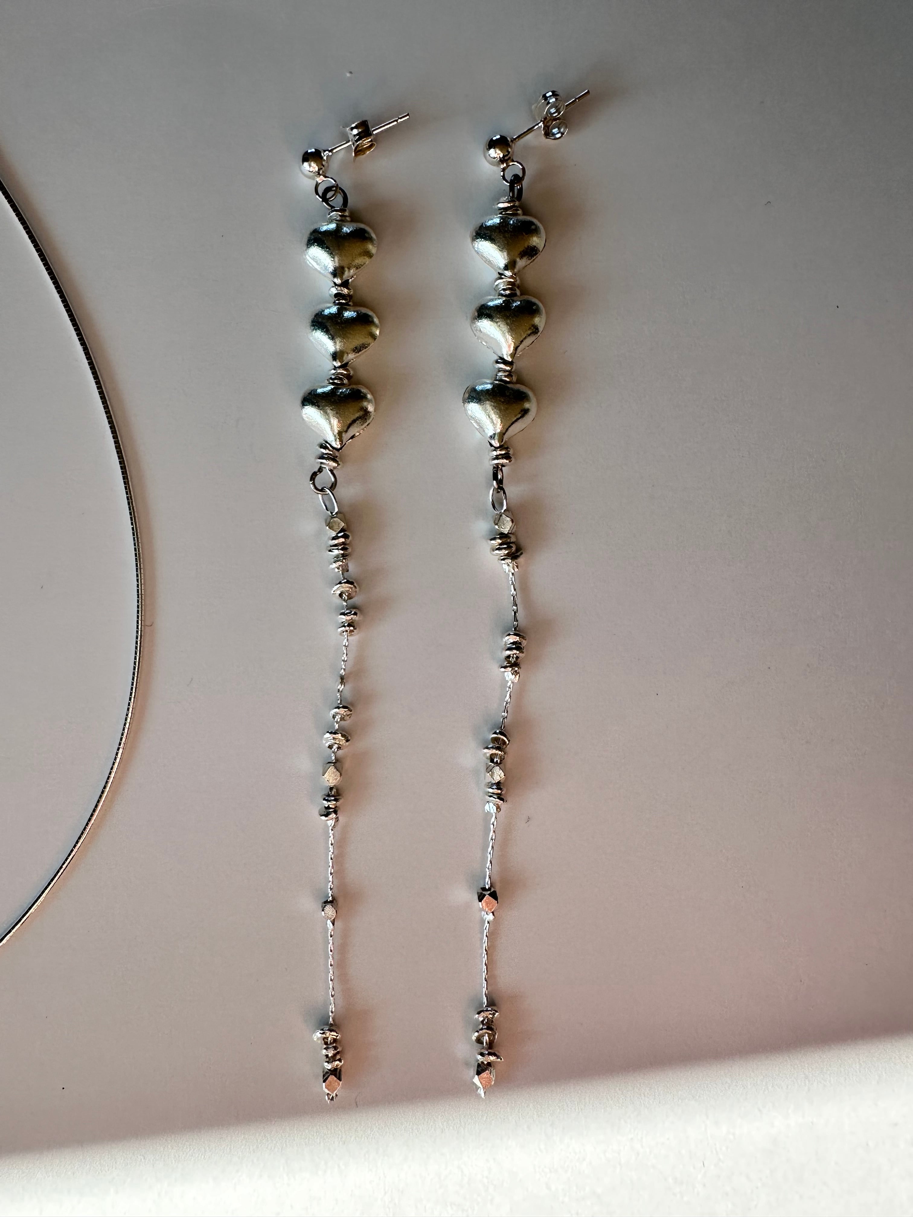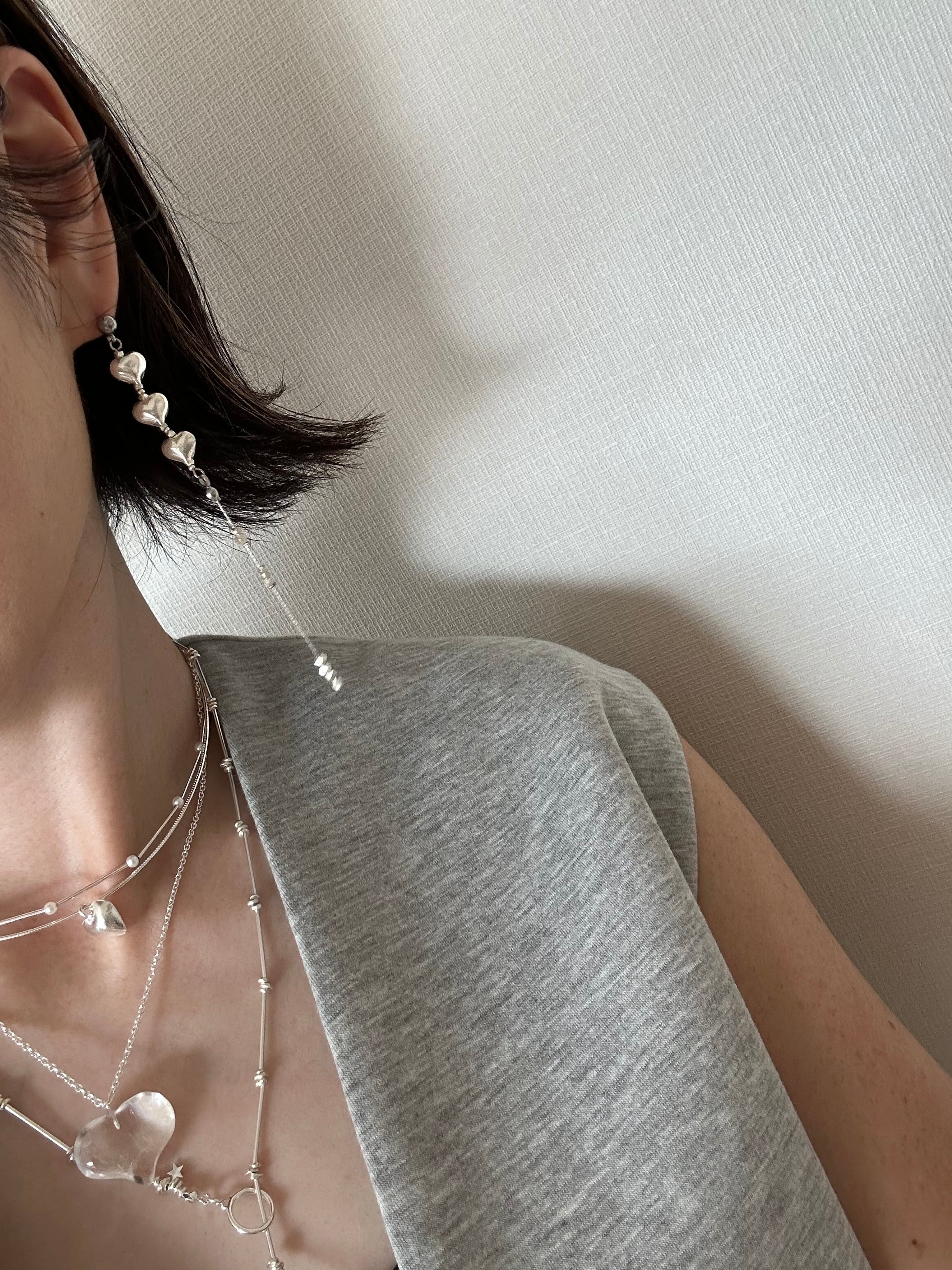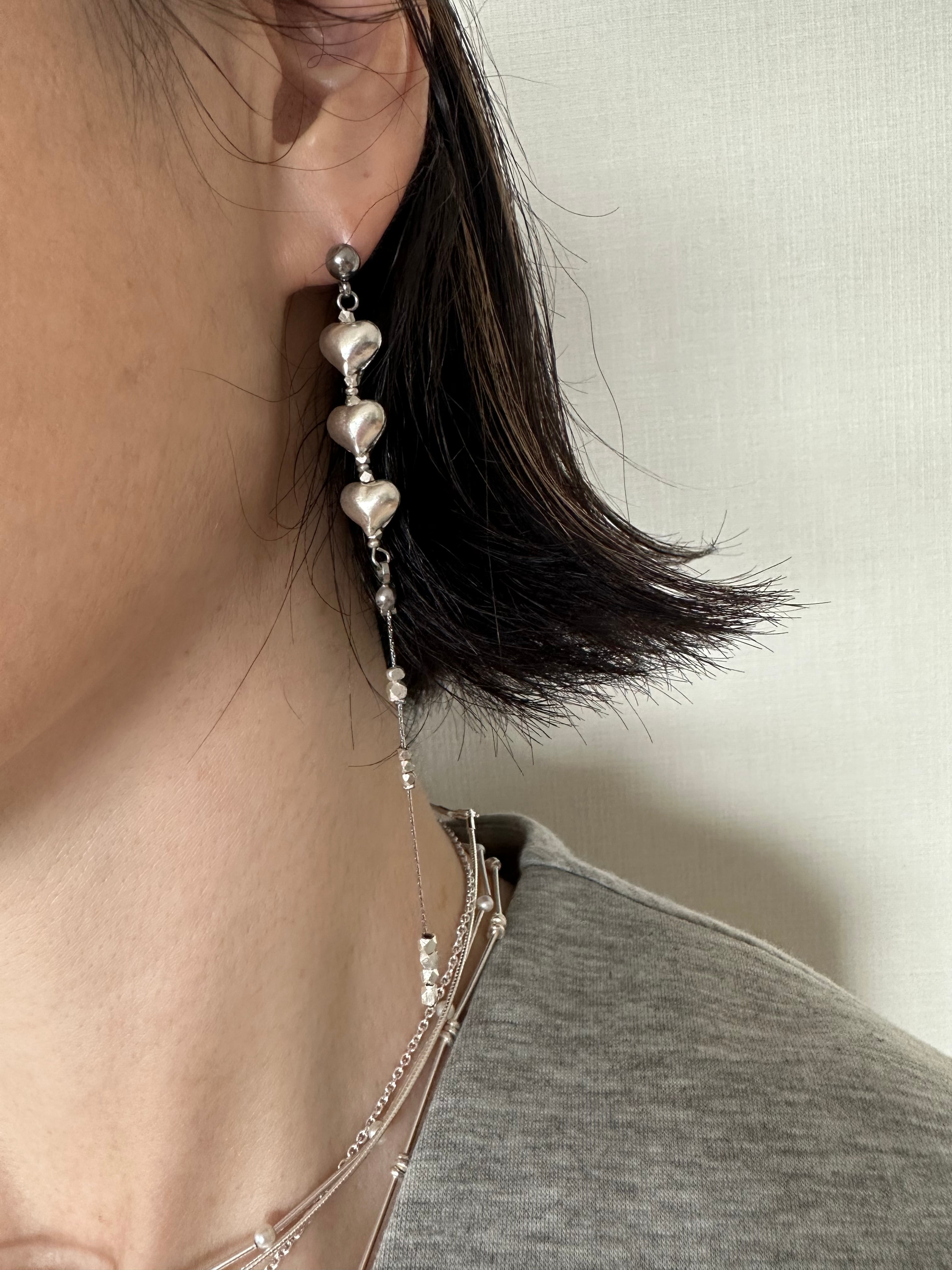 カレンシルバー Mサイズ ハートロングピアス