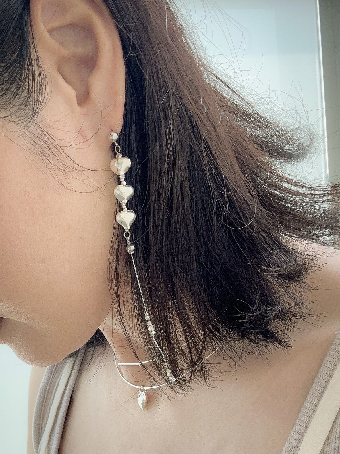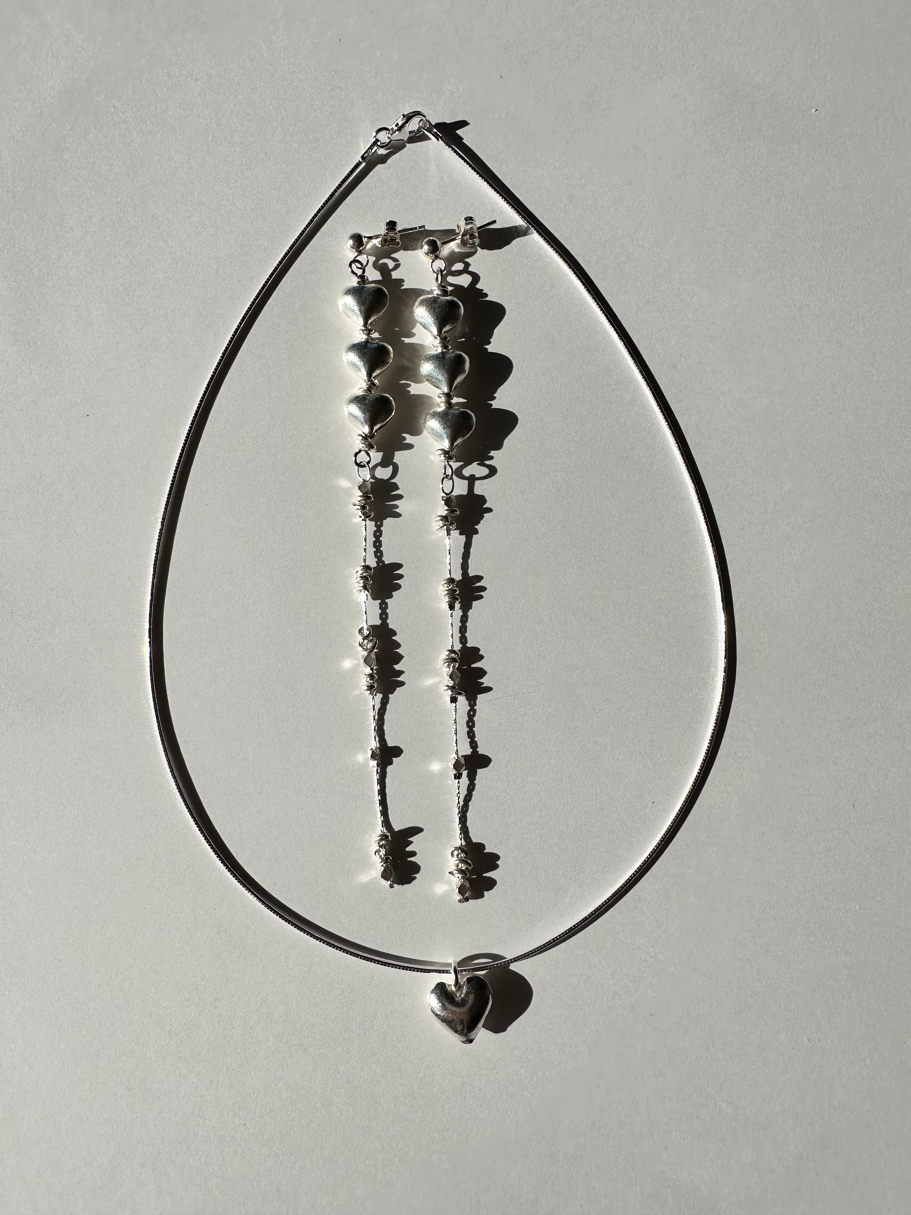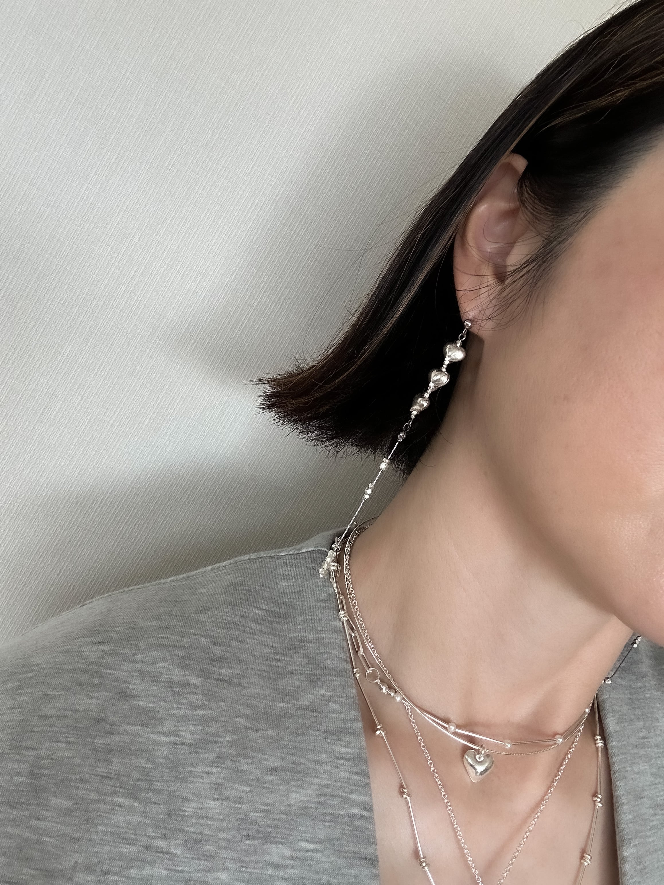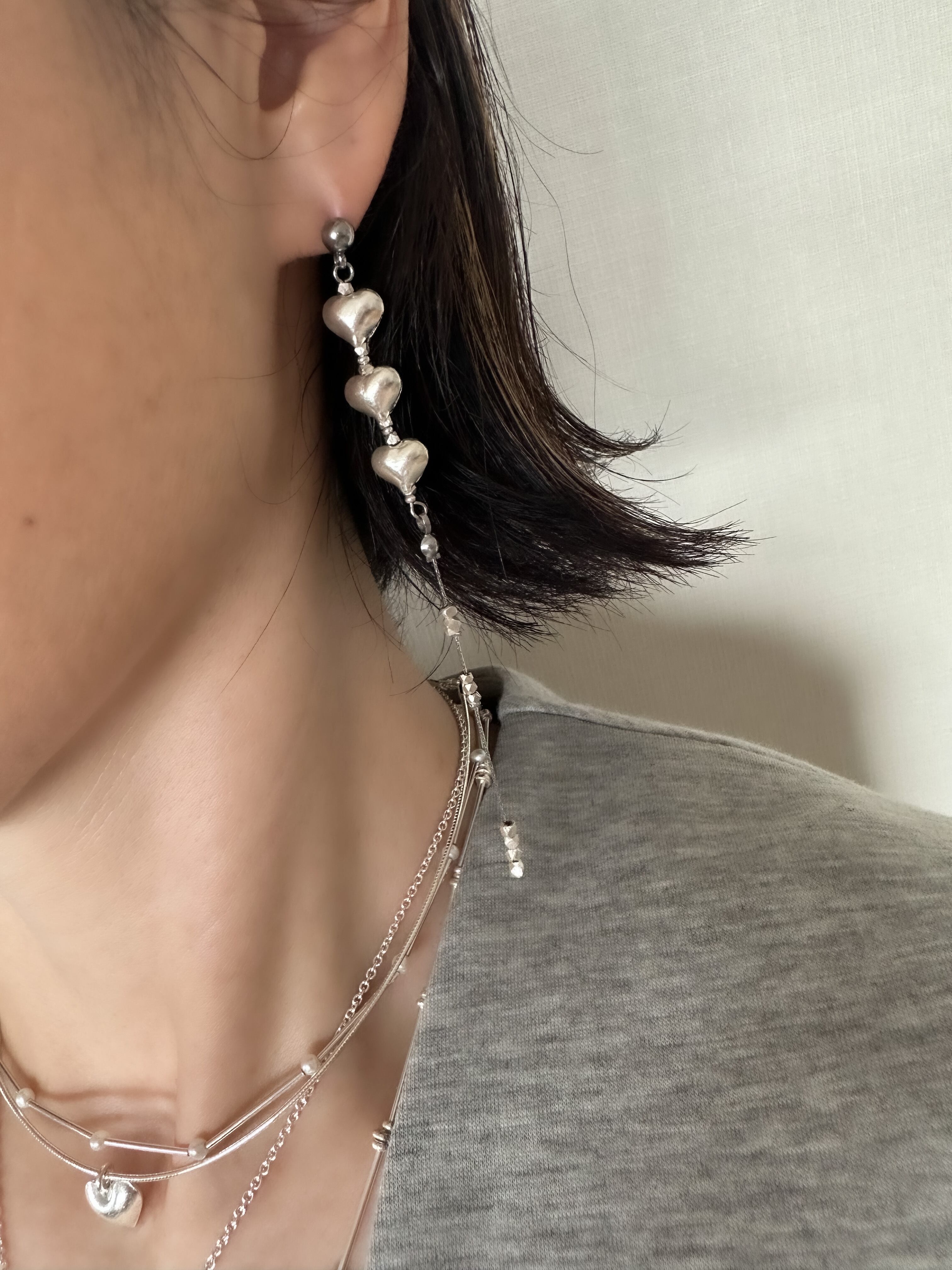 カレンシルバー Mサイズ ハートロングピアス