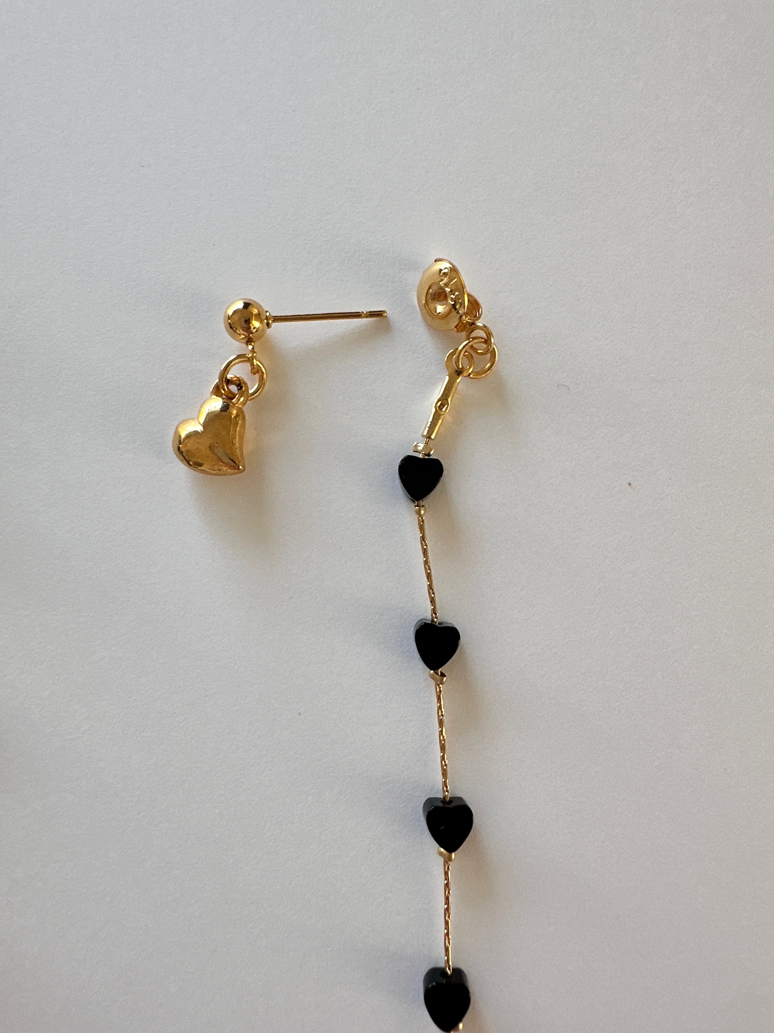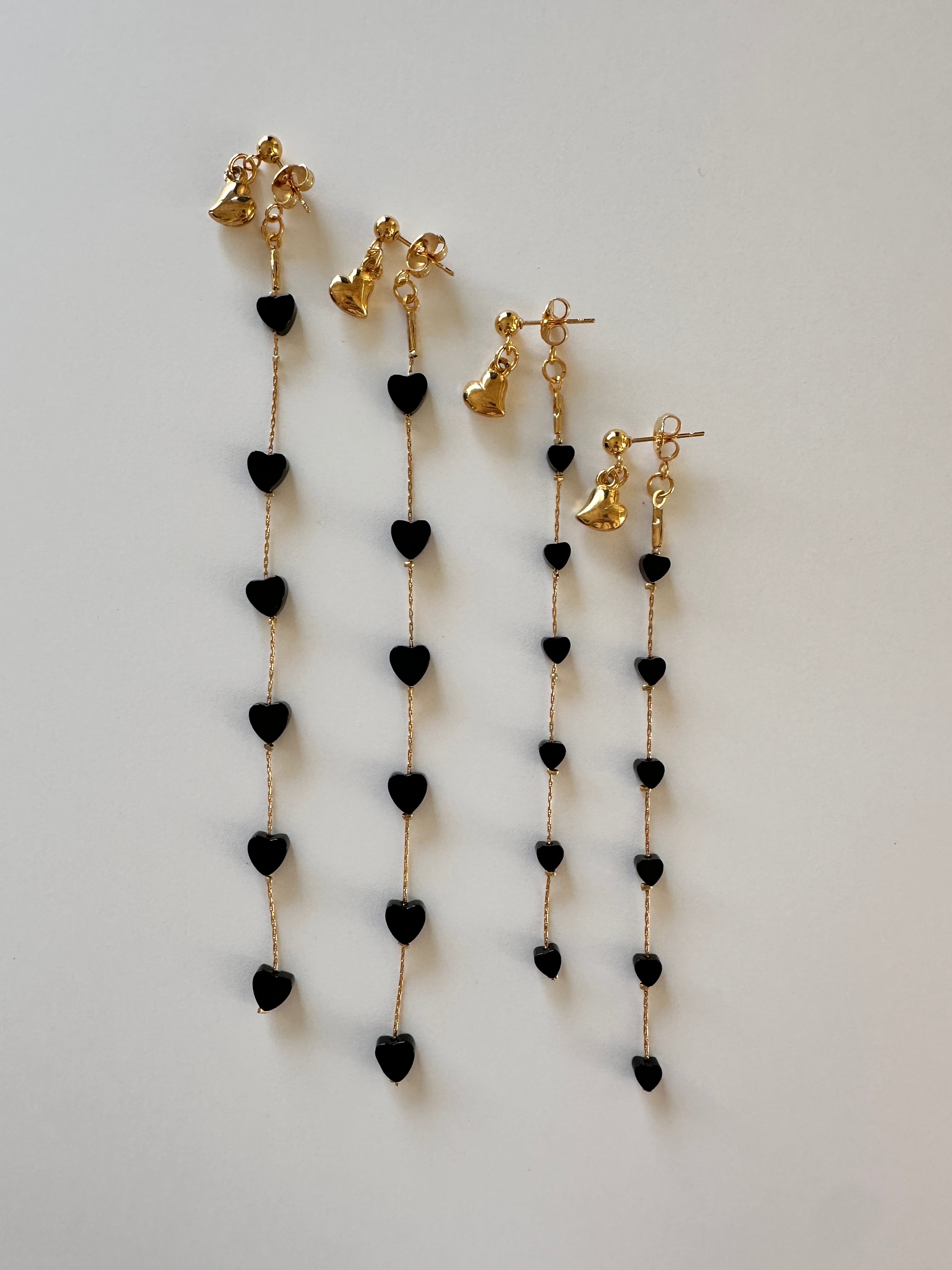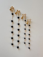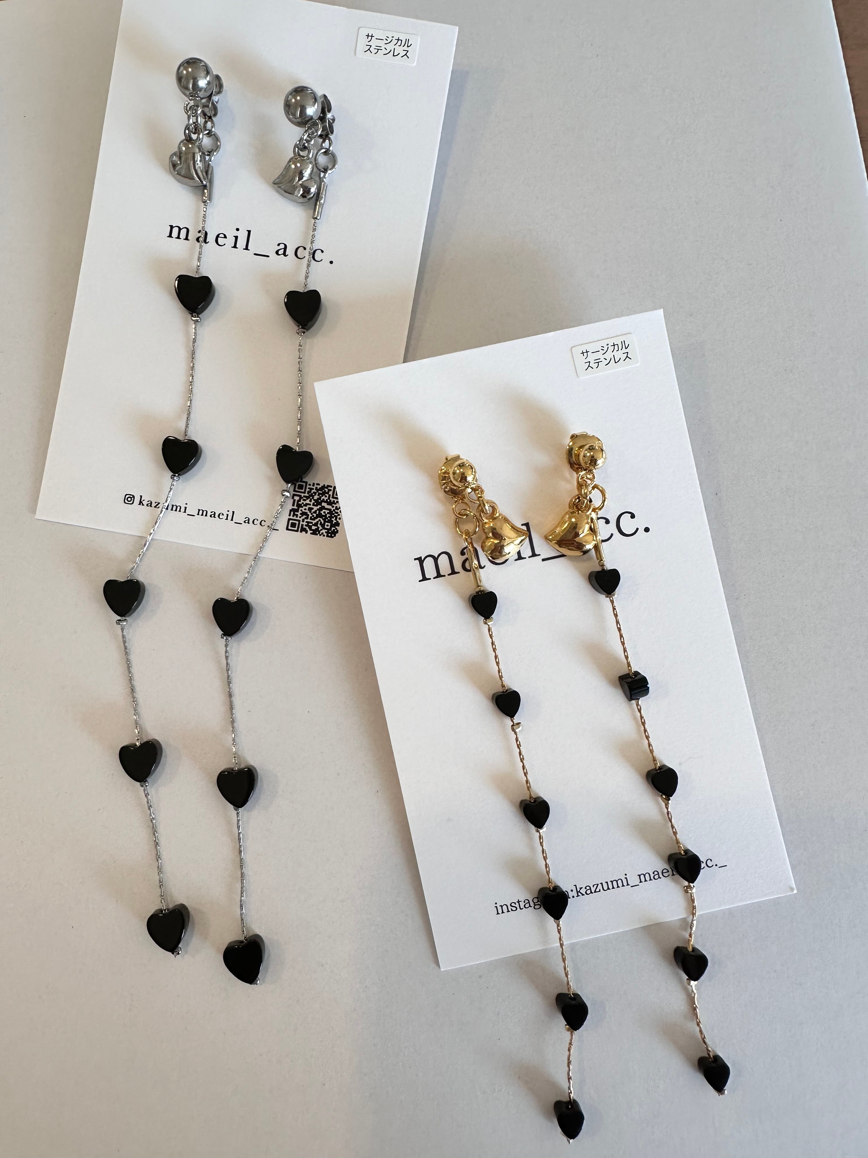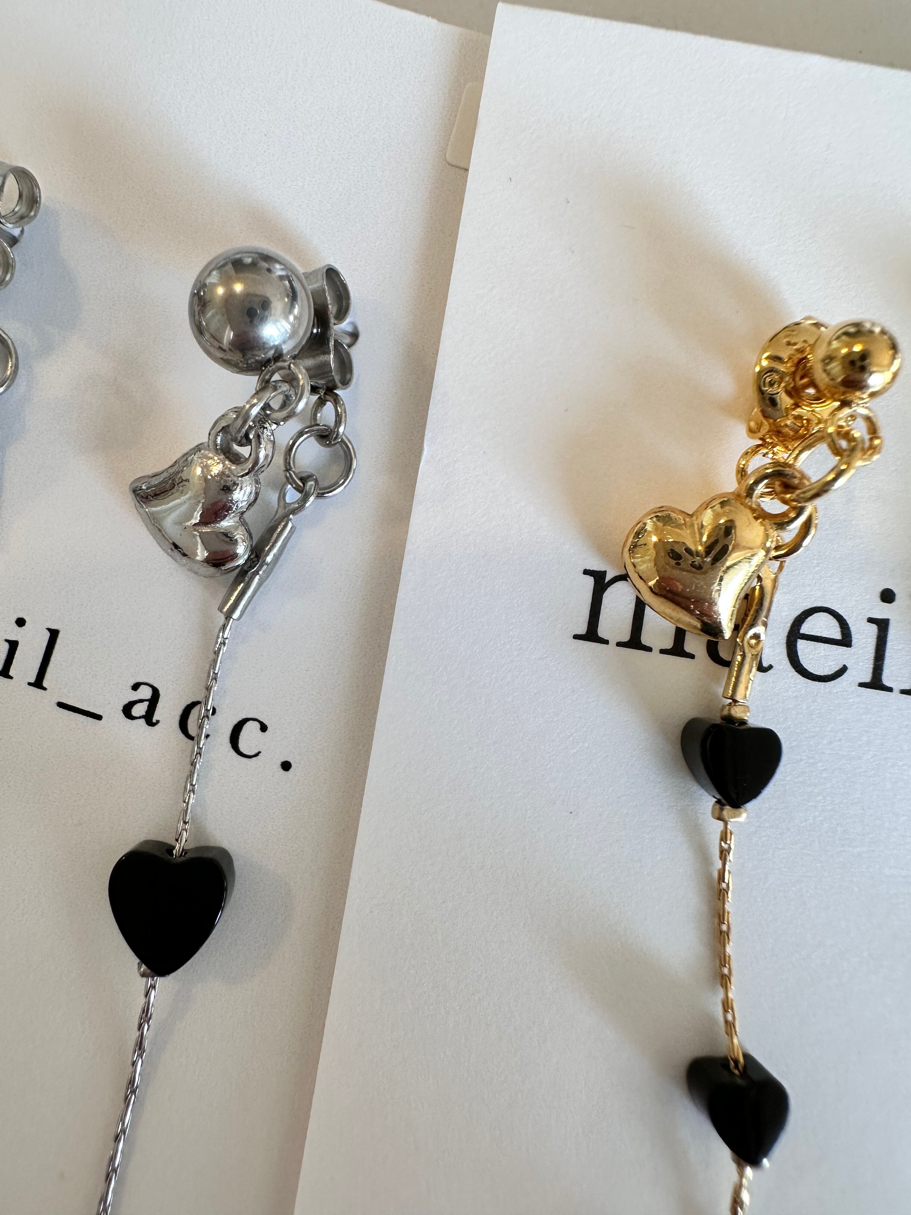 オニキスミニハート ロングピアス/イヤリング サージカルステンレス 10cm