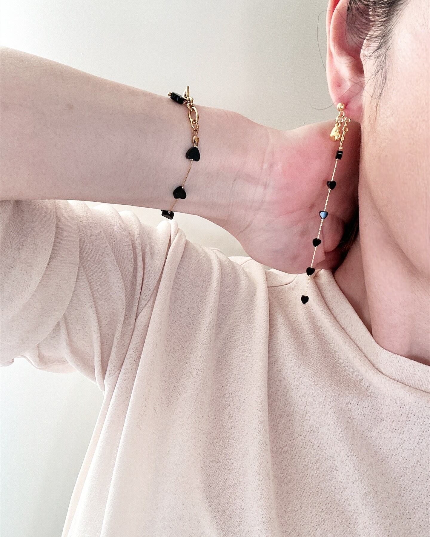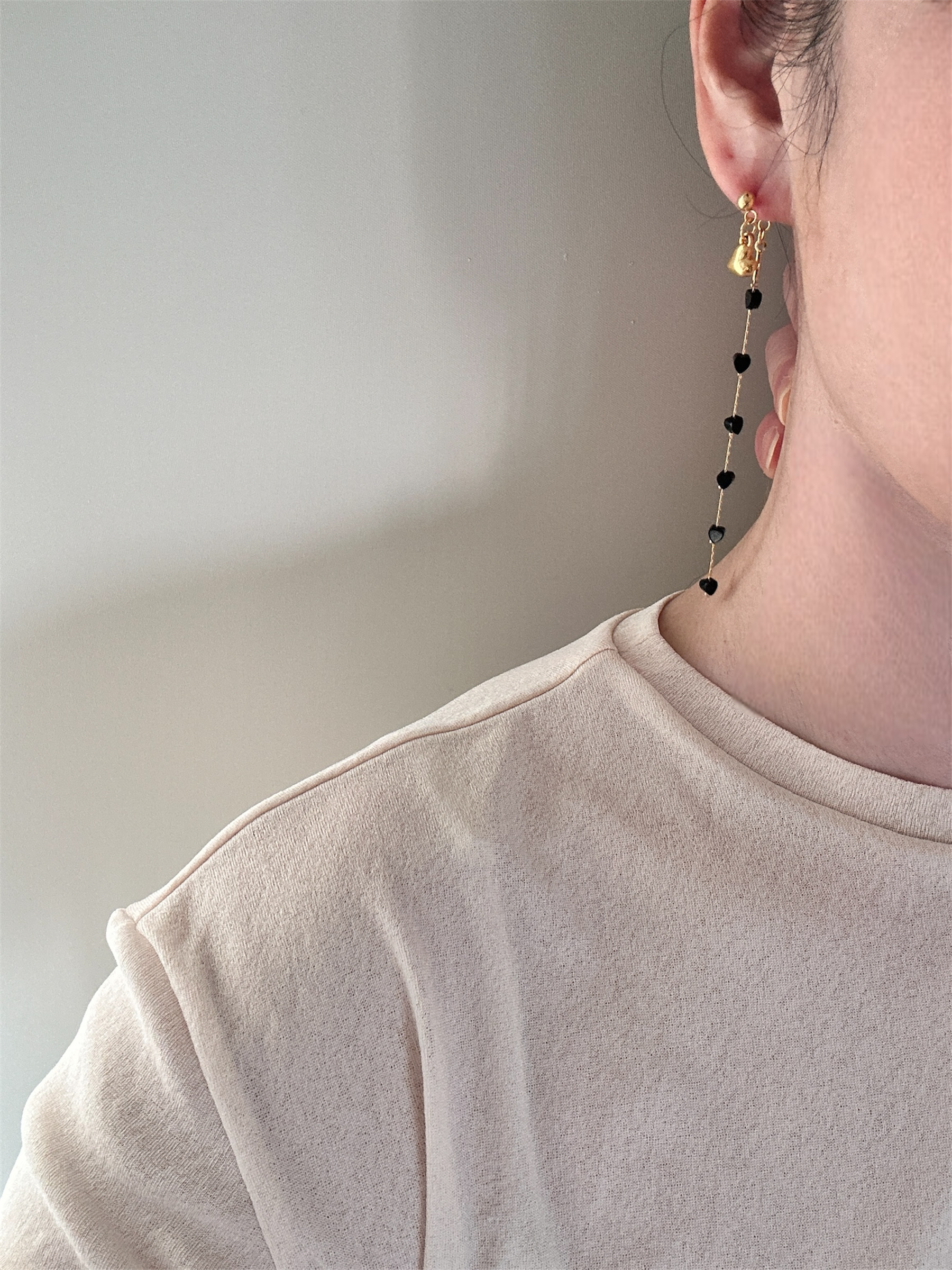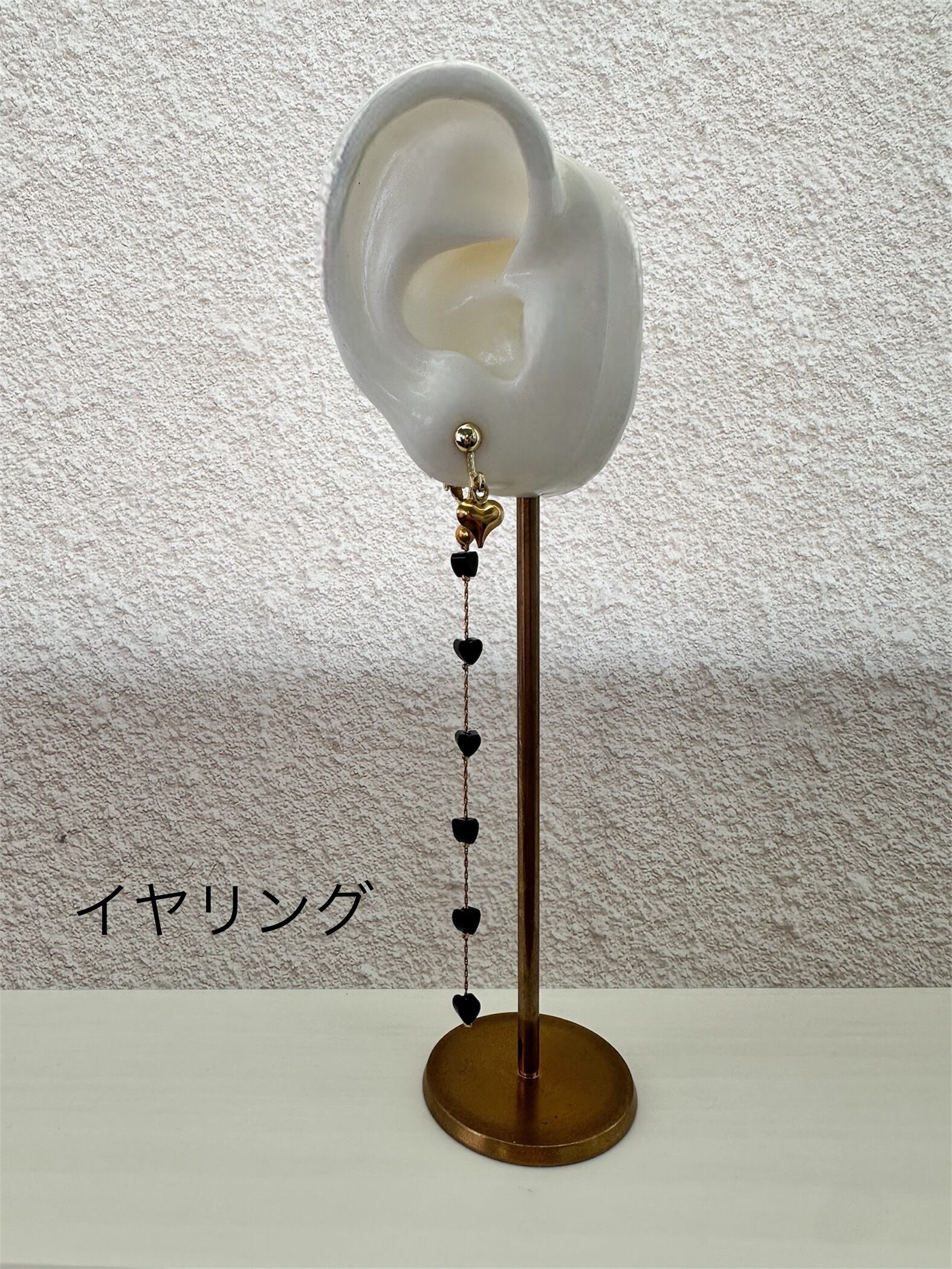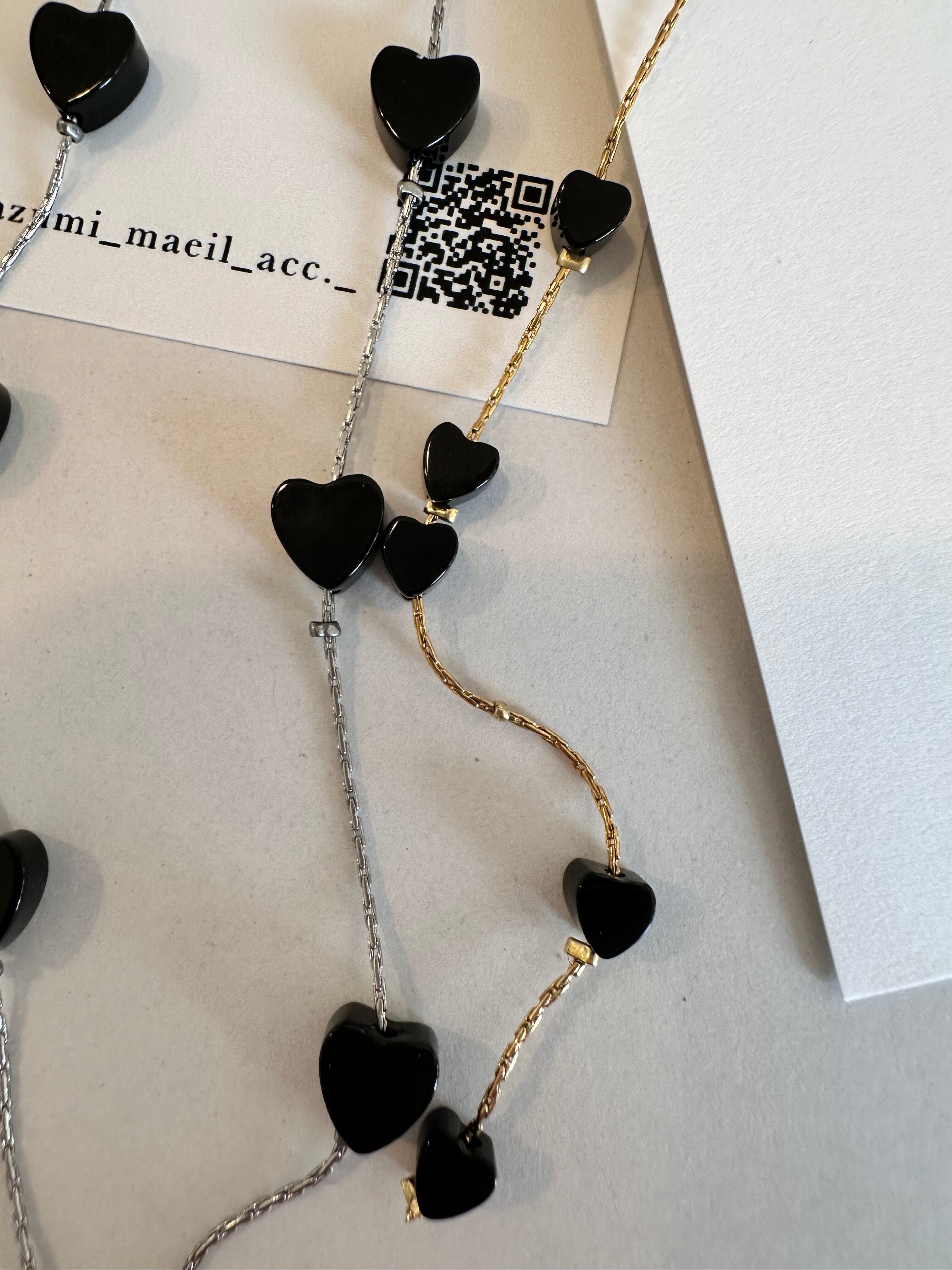 オニキスミニハート ロングピアス/イヤリング サージカルステンレス 10cm