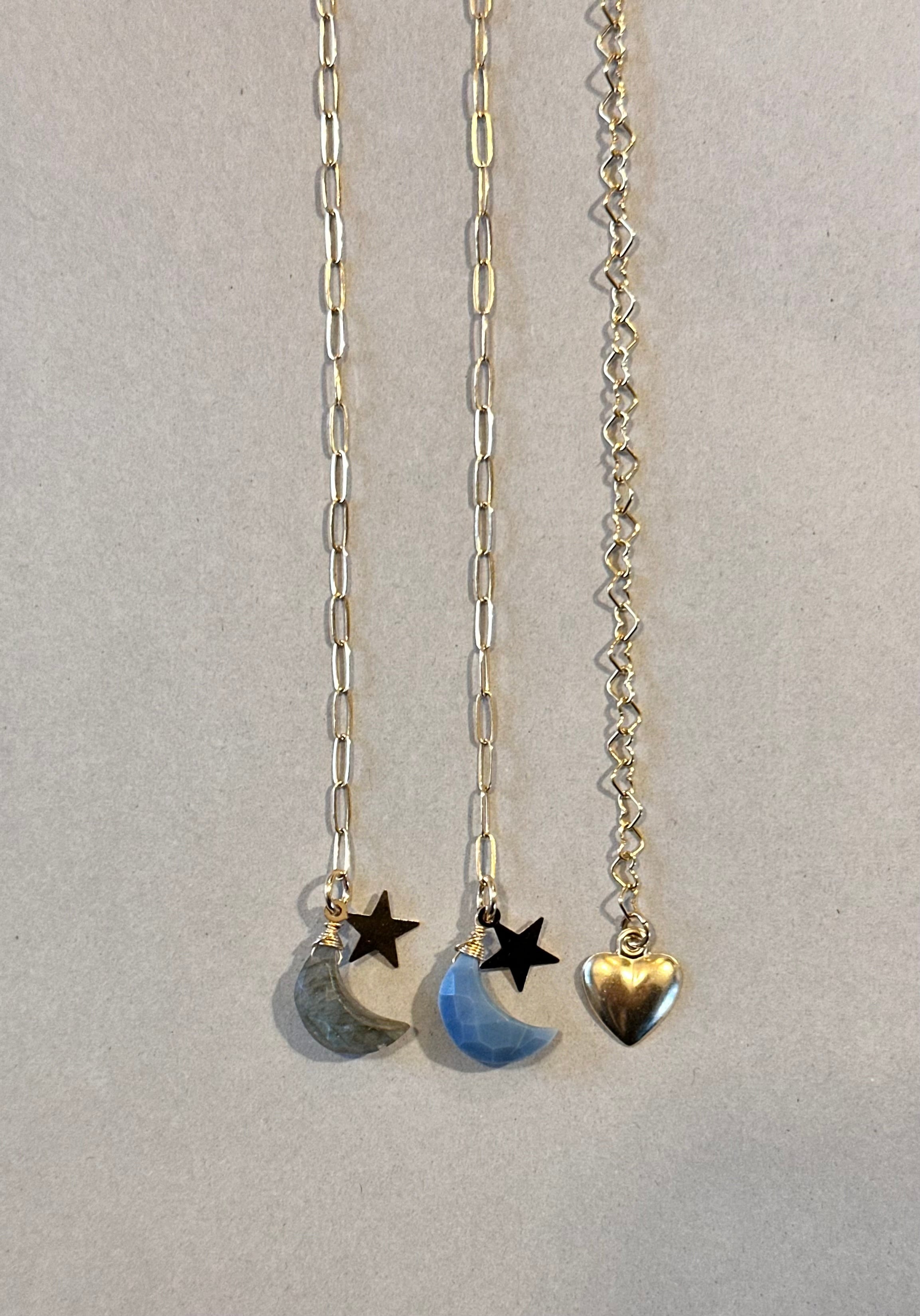 14kgf bracelet moon(ラブラドライト&ブルーカルセドニー)heart(14kgf)